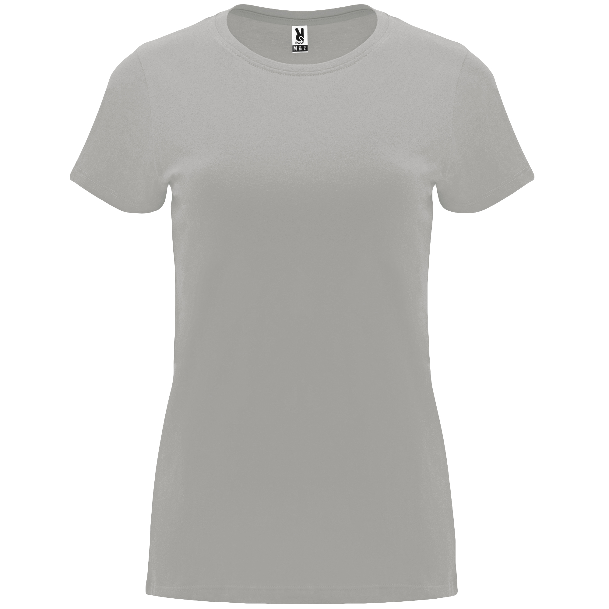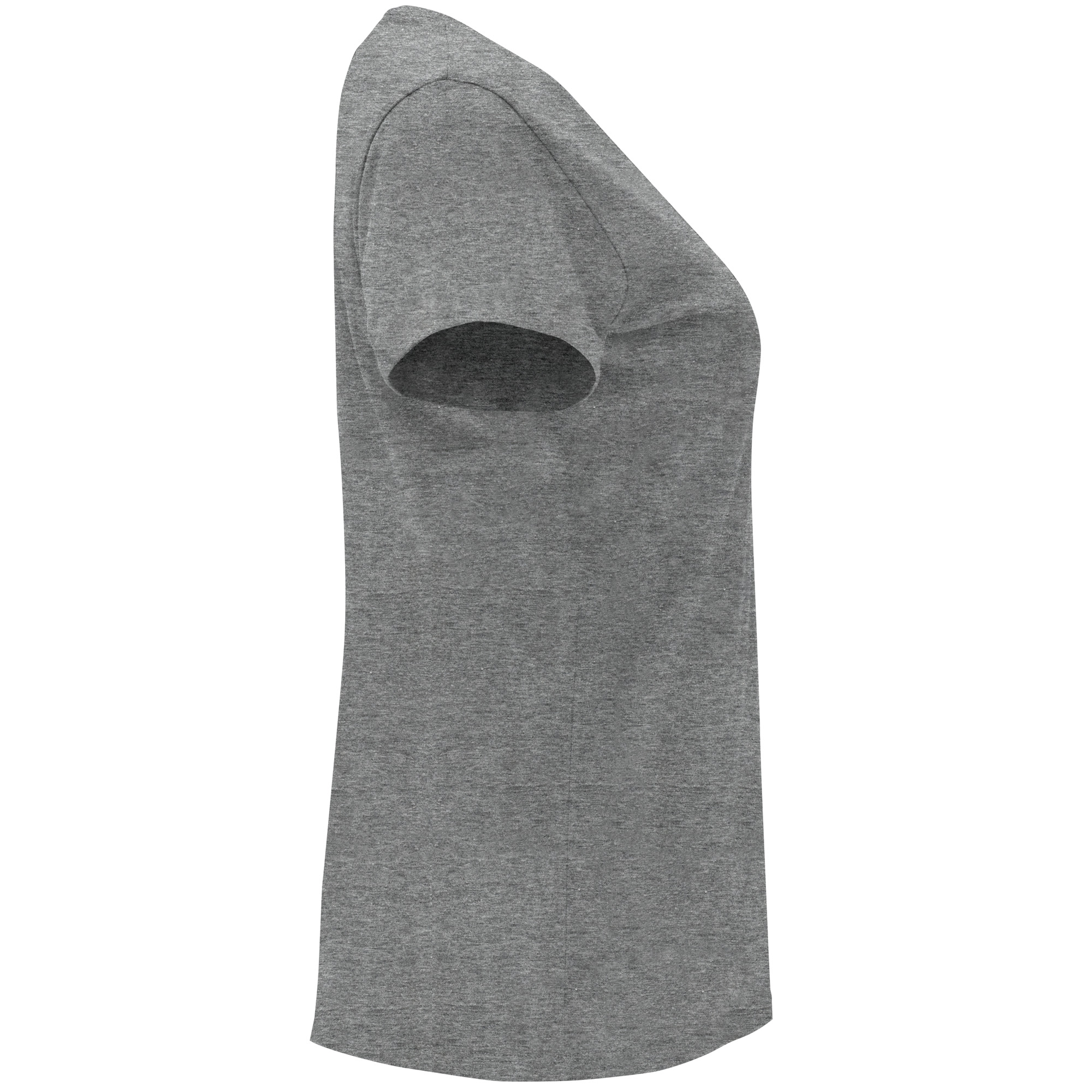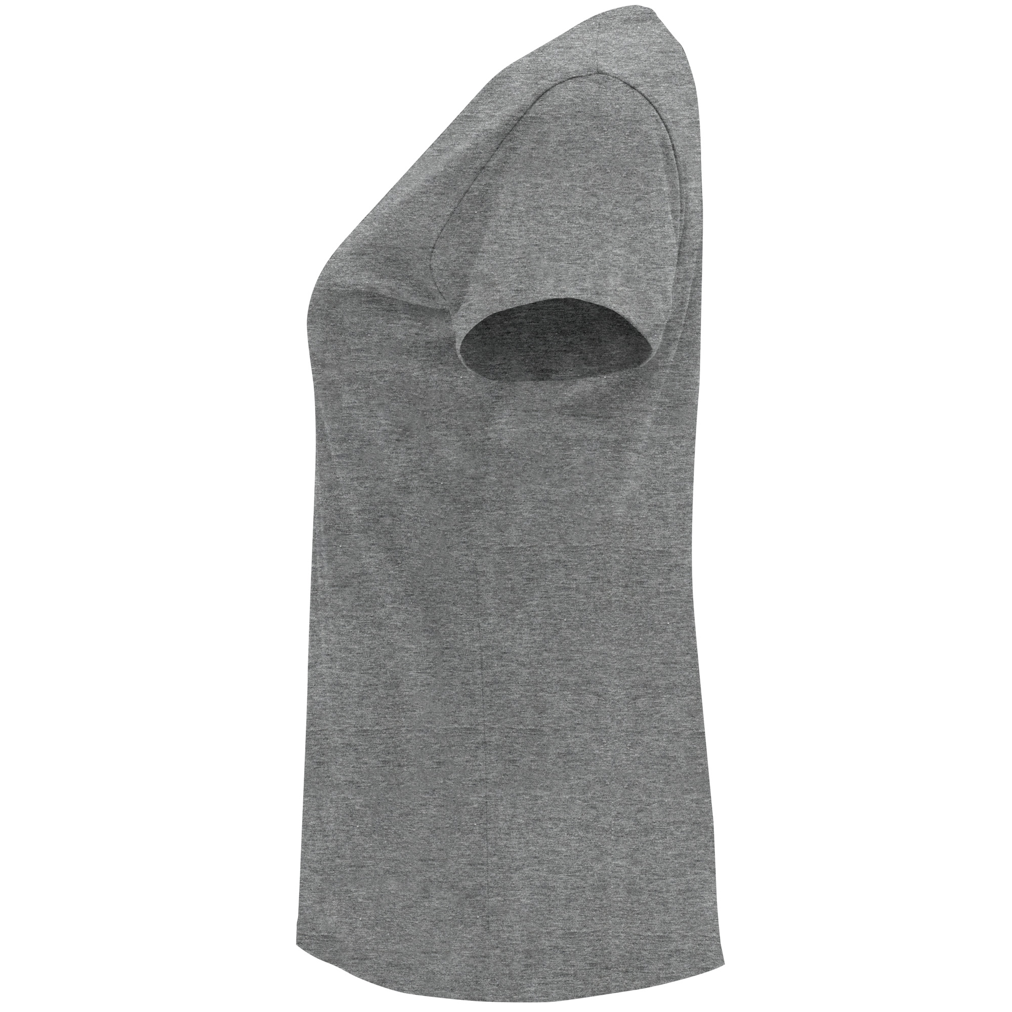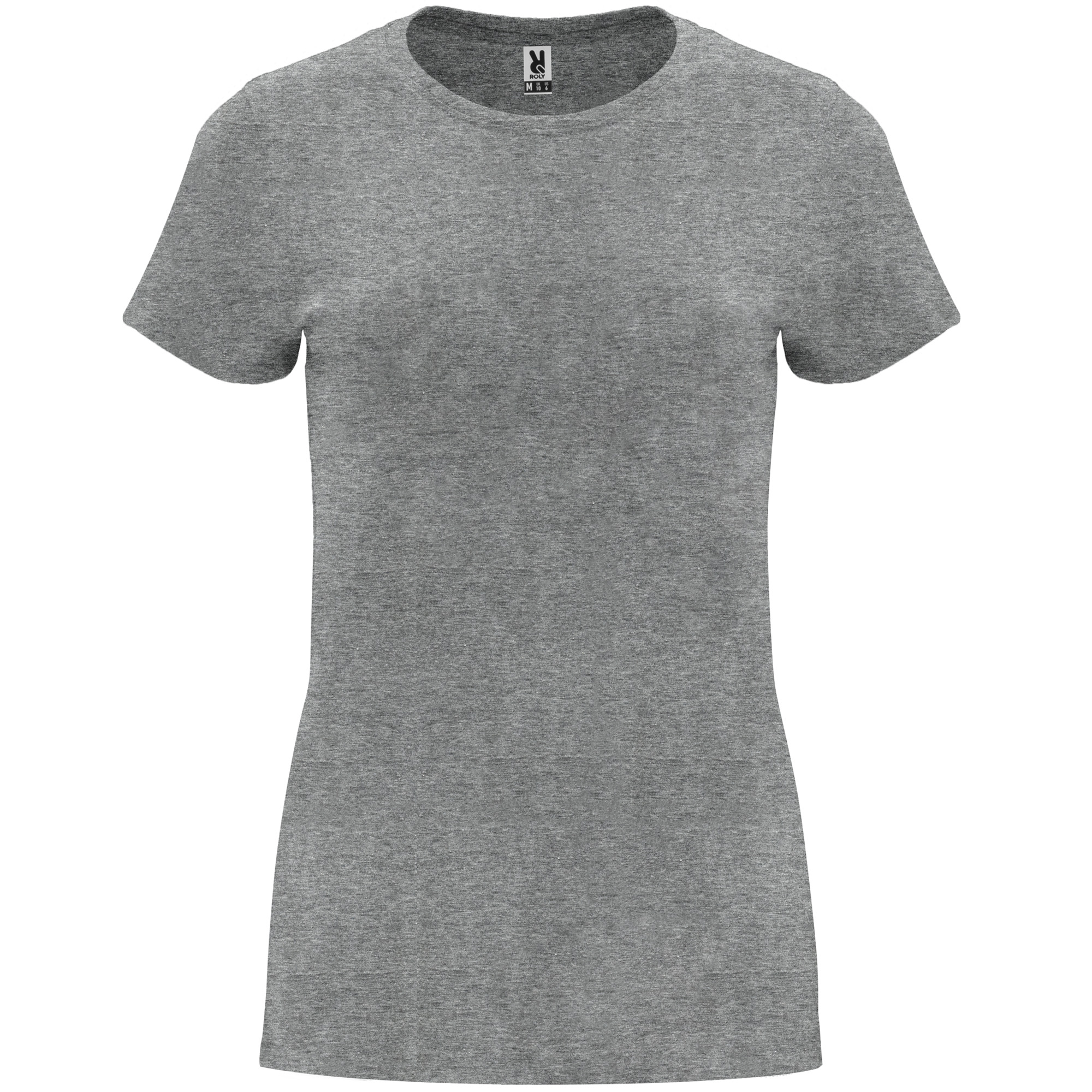 Жіноча приталена футболка з коротким рукавом. Кругла горловина в рубчик 1x1. Матеріал: 100% бавовна, одинарний трикотаж, 170 г/кв.м. Колір сірий-меланж 58: 85% бавовна / 15% віскоза. Знімна етикетка.